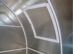 - Описание Форточка врезная к теплице Агросфера предназначена для проветривания теплицы и устанавливается в крышу теплицы с помощью саморезов с оцинкованной шайбой и резиновым уплотнителем.