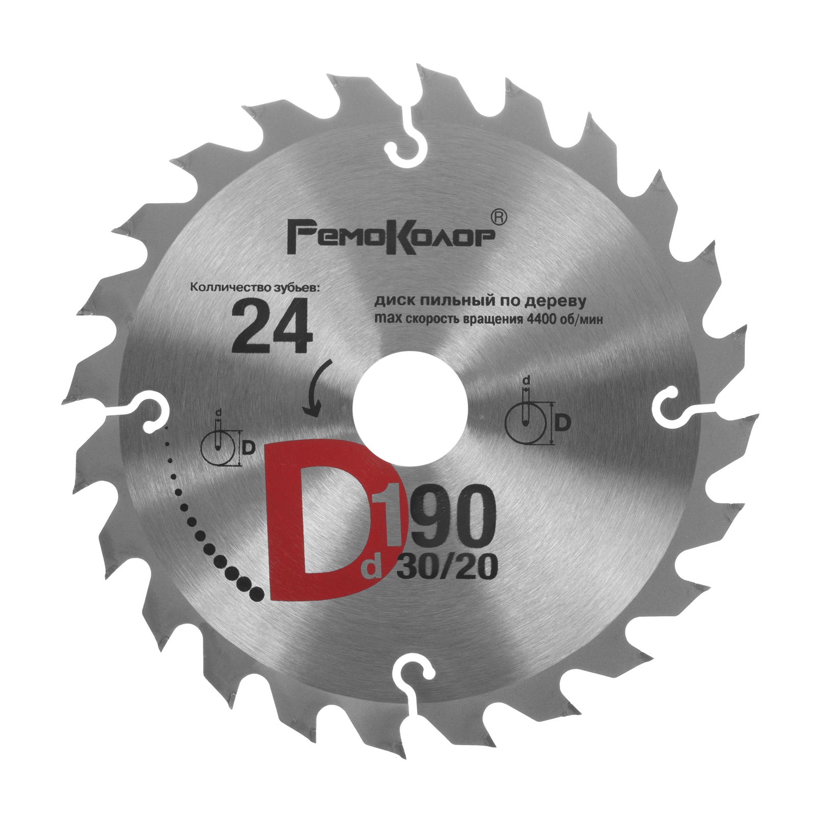 Диск пильный РемоКолор 190x30/20 мм, 24 зуба 74-1-191 предназначен для продольной и поперечной распиловки древесины. Применяется, как рабочий инструмент для ручных и стационарных электрических пил по дереву и универсальных деревообрабатывающих станков. Оснащен твердосплавными напайками из карбида вольфрама. Материал диска - легированная инструментальная сталь.