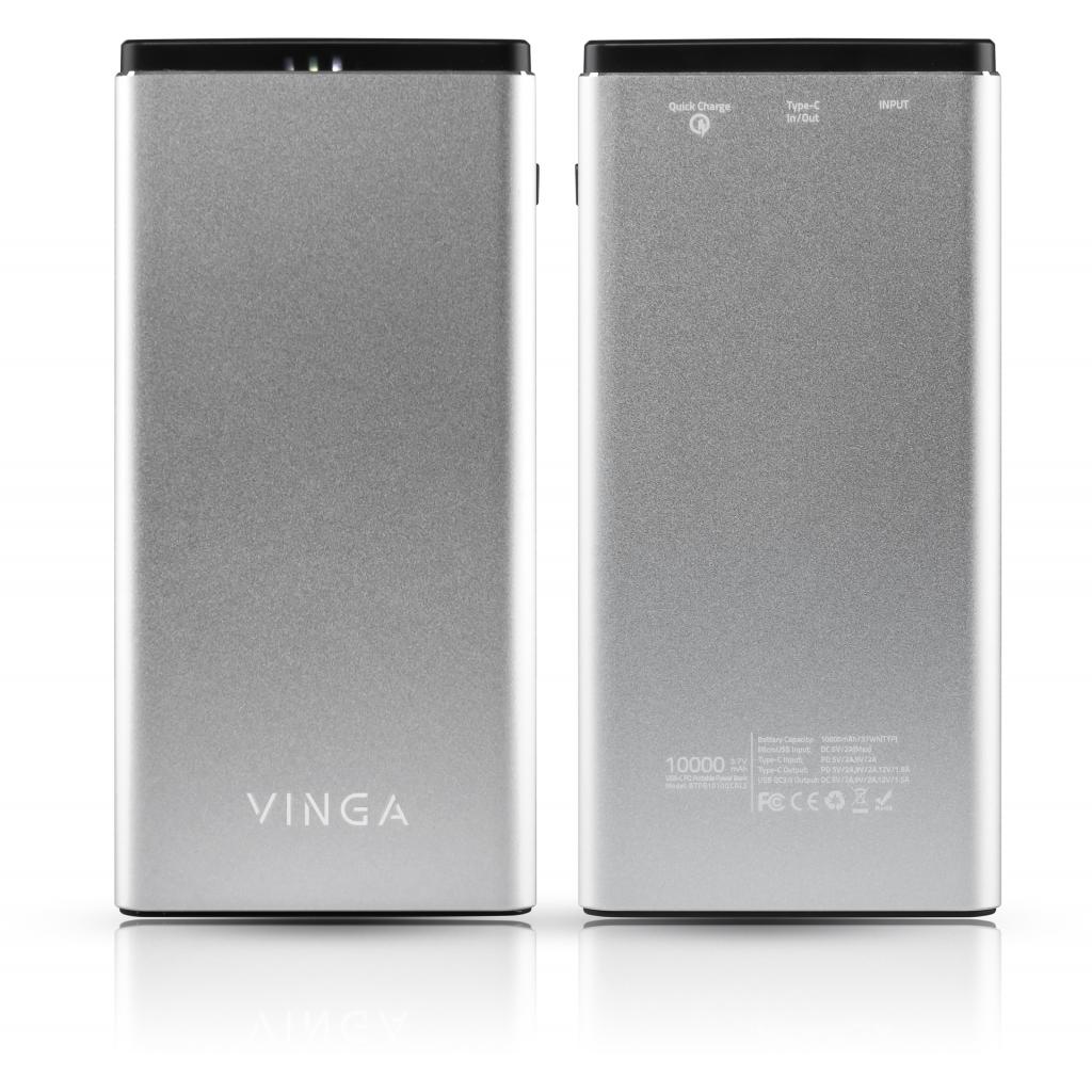 Батарея универсальная Vinga 10000 mAh QC3.0 PD aluminium silver (BTPB1010QCALS)