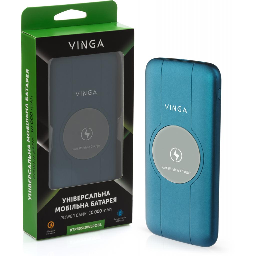 Батарея универсальная Vinga 10000 mAh Wireless QC3.0 PD soft touch blue (BTPB3510WLROBL)