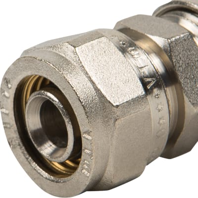 Соединитель обжимной Valtec, 16 мм, никелированная латунь