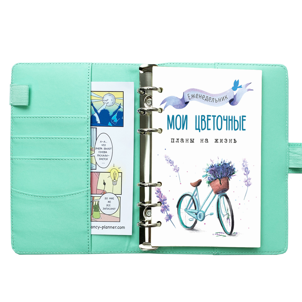 Ежедневник А6 Мои цветочные планы (эко-кожа, мятный)