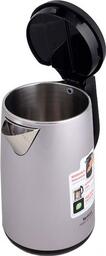 Электрический чайник, мощность 2400 Вт, объем 1.5 л, материал корпуса металл/пластик, нагревательный элемент закрытая спираль, дополнительные функции: индикация включения, подставка с вращением на 360°.