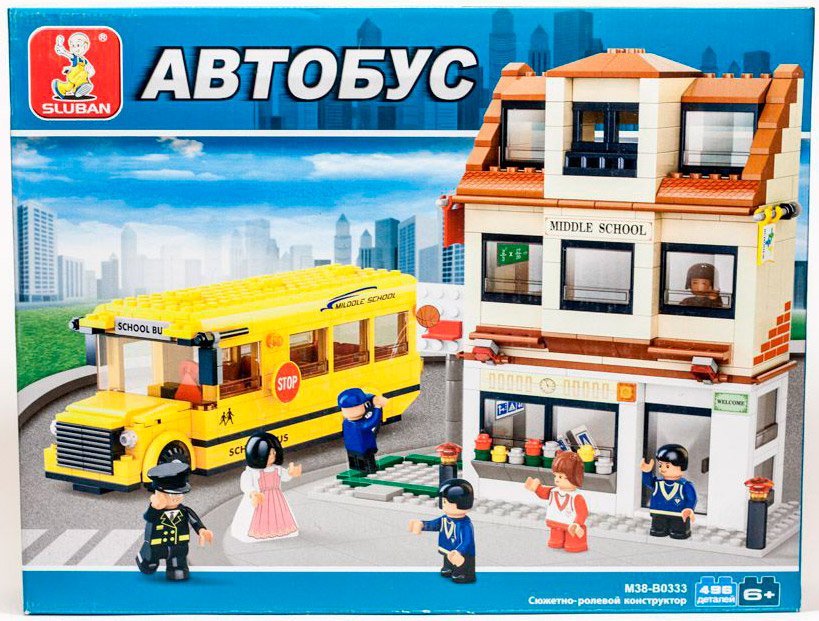 Конструктор Sluban Автобус M38-B0333 Школьный автобус со школой