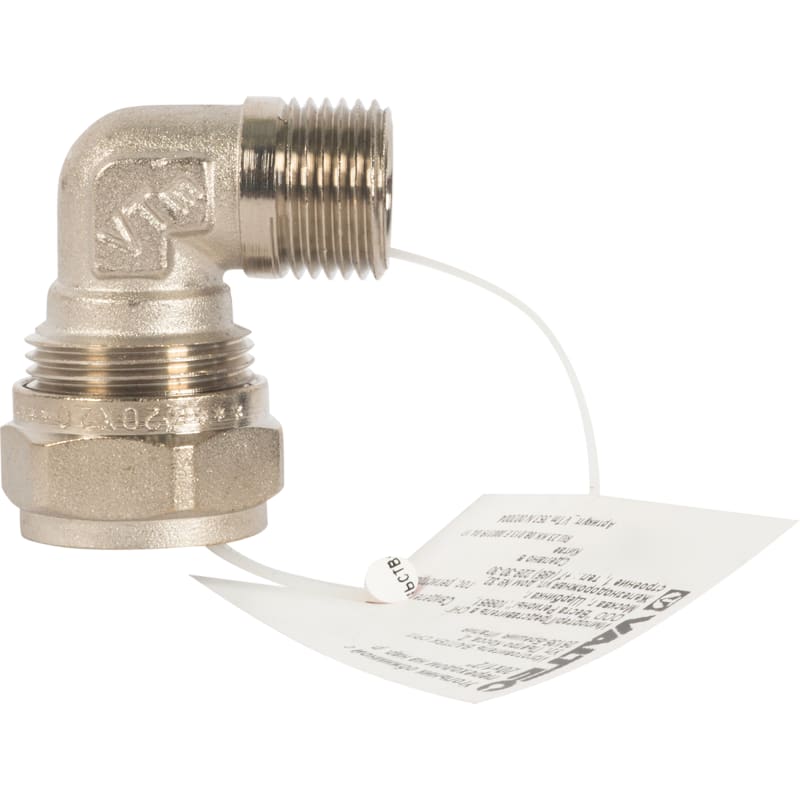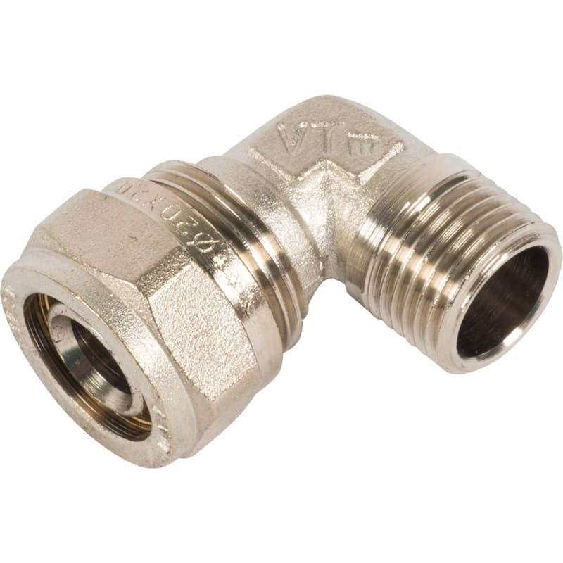 Угол обжимной Valtec, наружная резьба, 20х1/2" мм, никелированная латунь