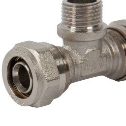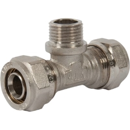 Тройник обжимной Valtec, наружная резьба, 20х1/2" мм, никелированная латунь