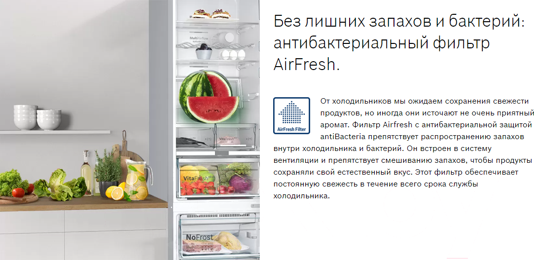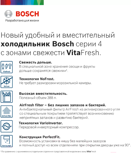 • Технологии Multi Airflow System (Bosch), SuperCool (Bosch), FreshSense (Bosch), SuperFreezing (Bosch)