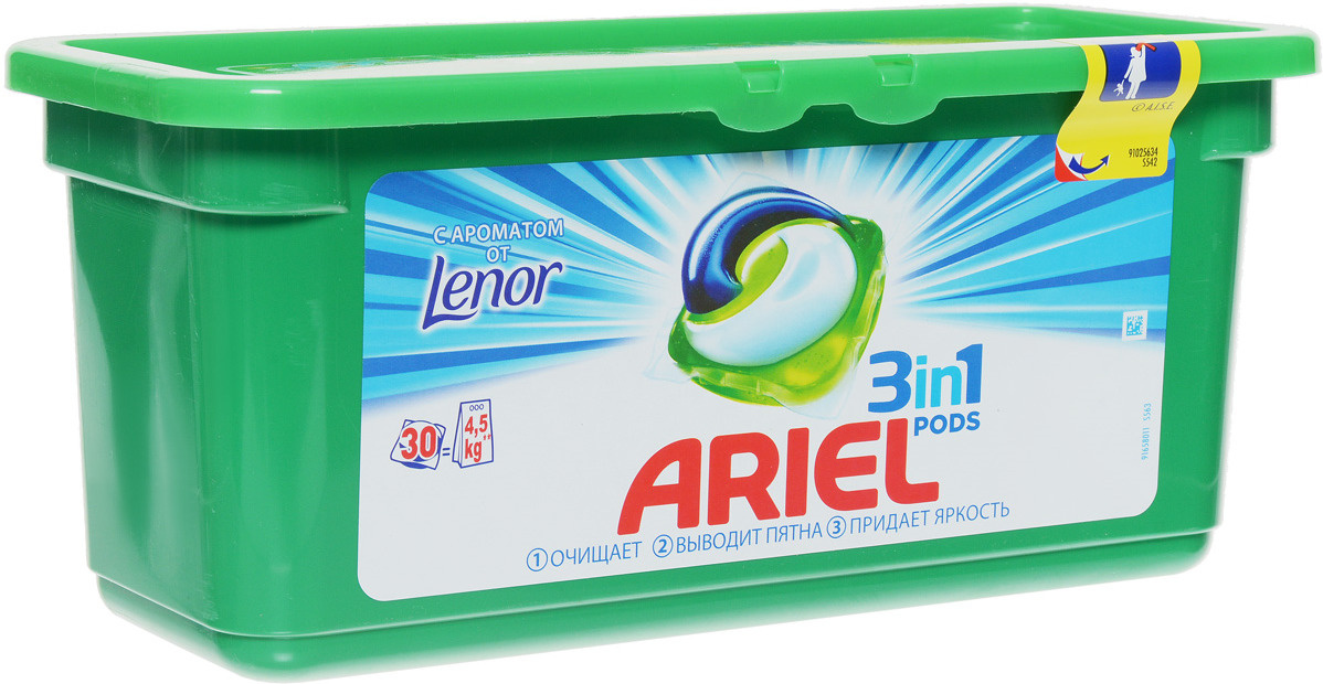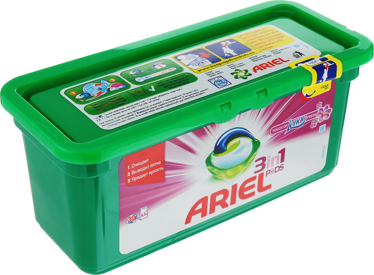 Гель в капсулах Ariel "Touch of Lenor Fresh", 3 в 1, 30 шт