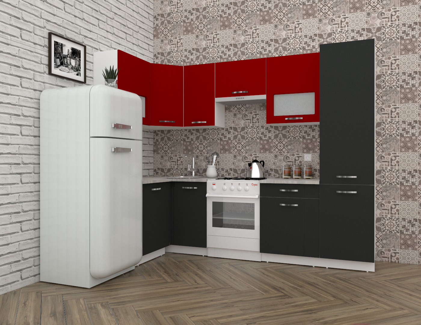 Готовая кухня ВерсоМебель Эко-5 1.4x2.6 левая (антрацит/красный чили)