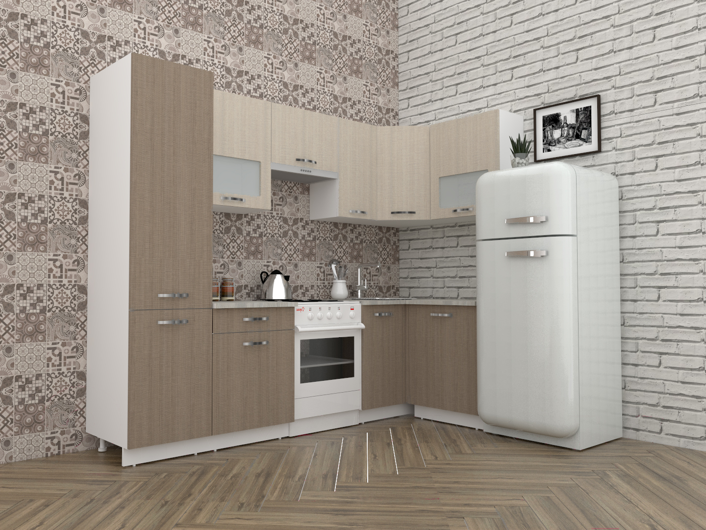 Готовая кухня ВерсоМебель Эко-5 1.2x2.6 правая (крослайн латте/крослайн карамель)
