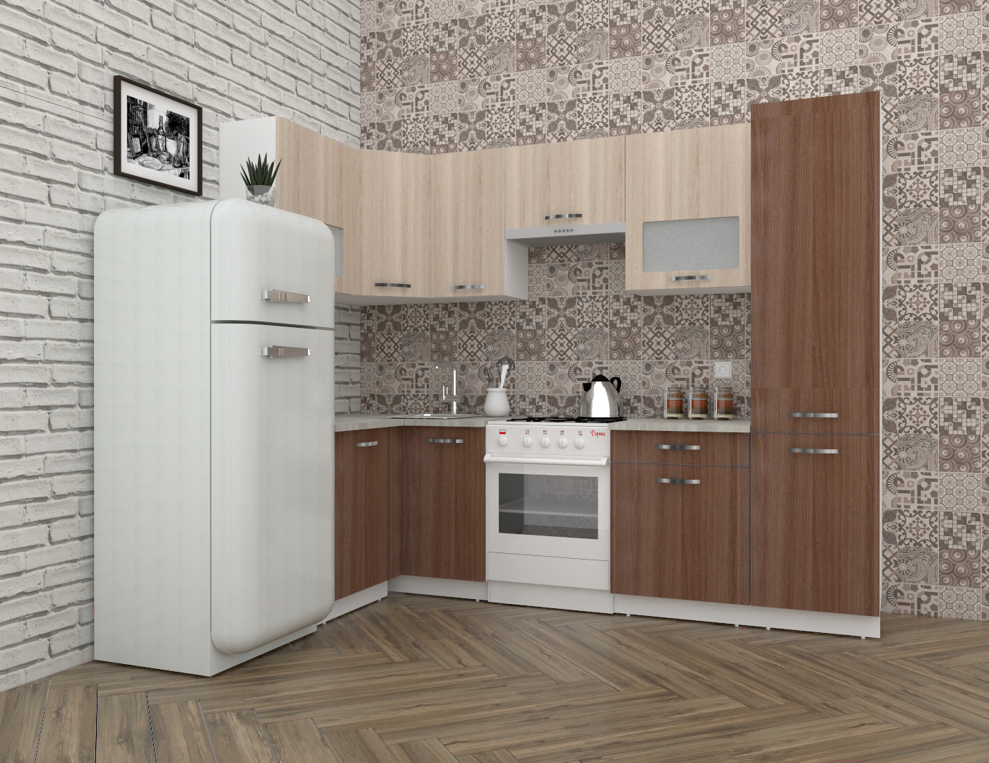 • Конструкция кухни угловая