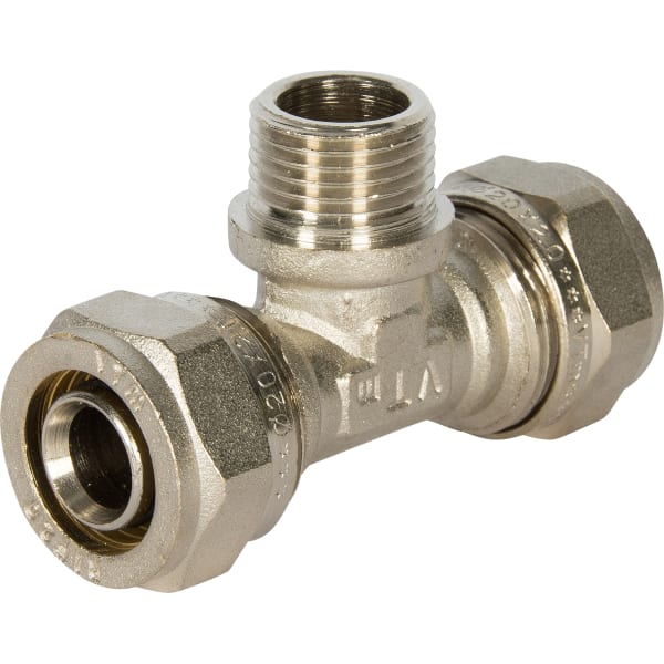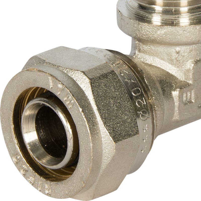 Тройник обжимной Valtec, внутренняя резьба, 20х1/2" мм, никелированная латунь