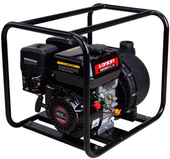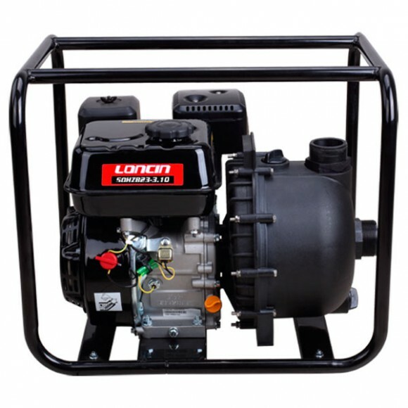 LONCIN LC50HZB23-3.1Q - универсальная мотопомпа для перекачивания химикатов, чистой и морской воды, содержащих включения размером до 5 мм. Агрегат работает на бензине, позволяя организовать транспортировку жидкостей в полях, на производстве, а также при нестабильной электросети.