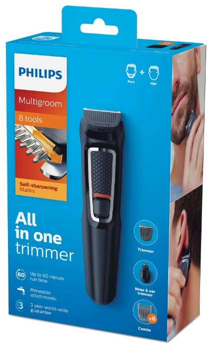 Дополнительная информация2 гребня для щетины; регулируемый гребень для бороды; 3 гребня для волос; триммер для стрижки в носу и ушах; щеточка для чистки
