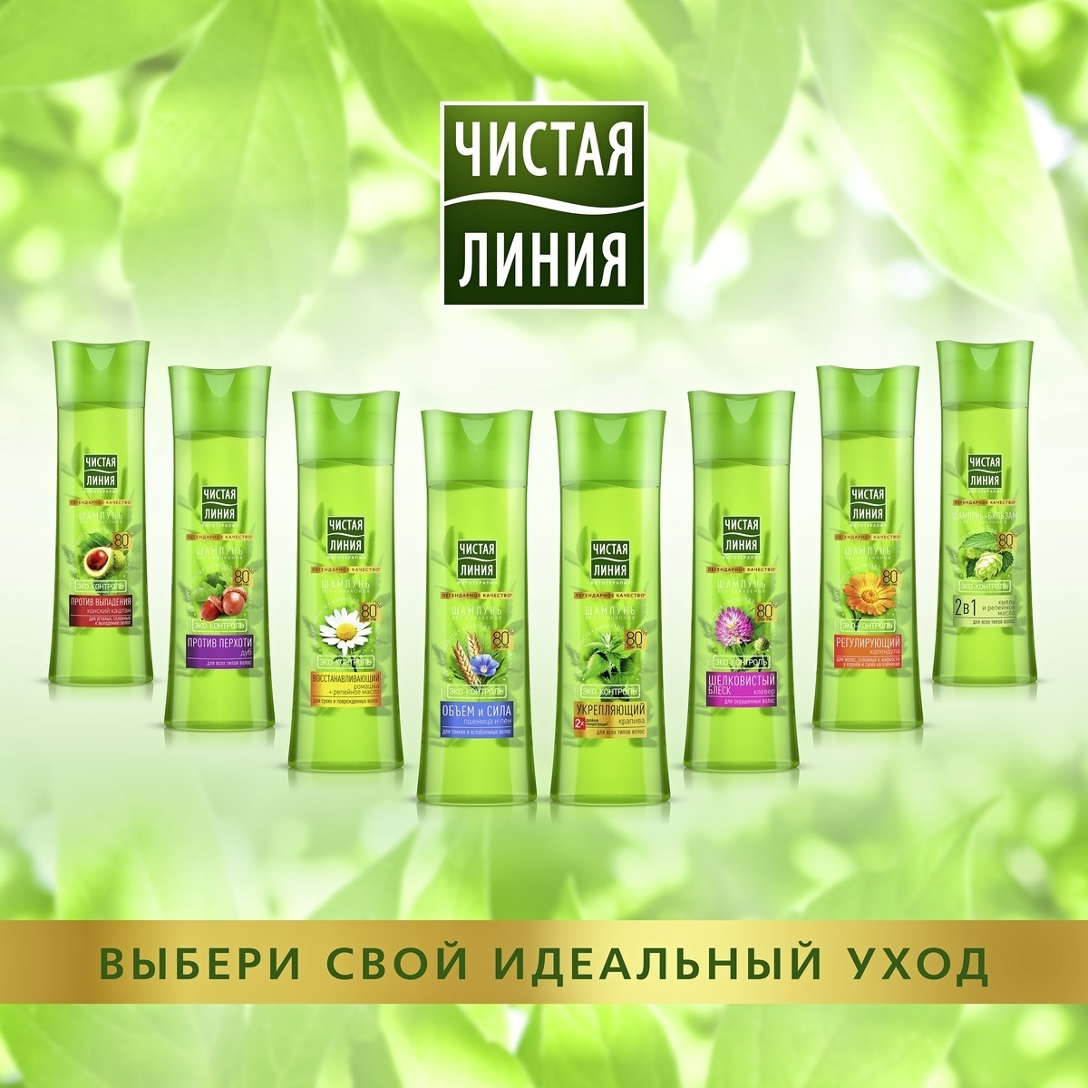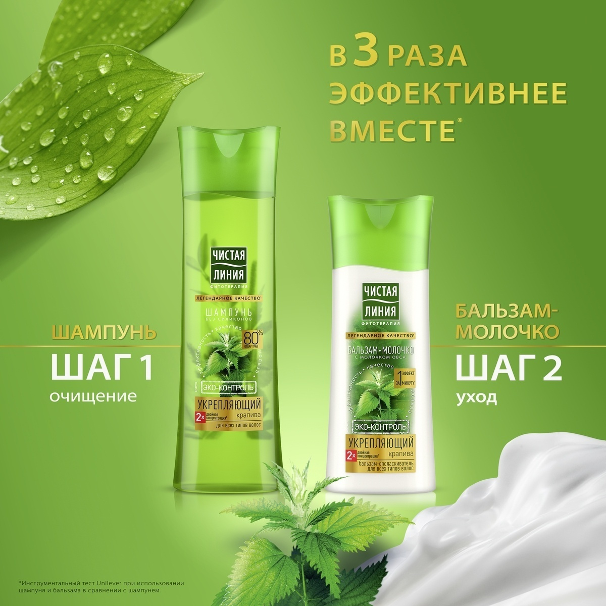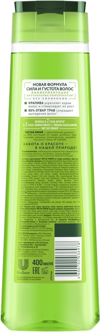 Чистая Линия Экоконтроль Крапива Шампунь для всех типов волос, 2 шт по 400 мл