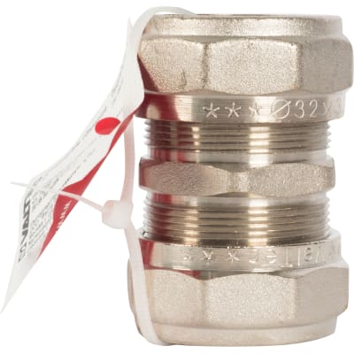Соединитель обжимной Valtec, 32 мм, никелированная латунь