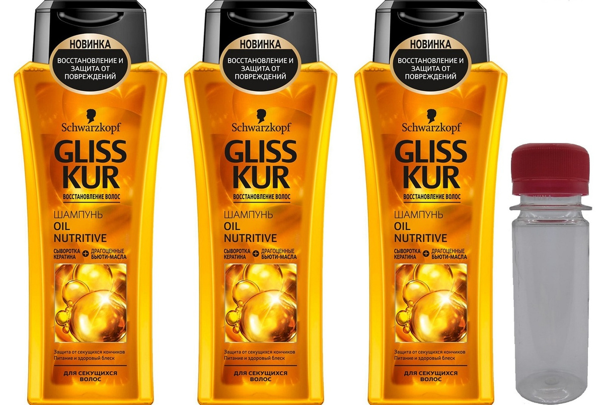 GLISS KUR набор из 3х бутылок шампуня по 250 мл Nutritive с бутылкой 50мл в Подарок (для поездок и путешествий)