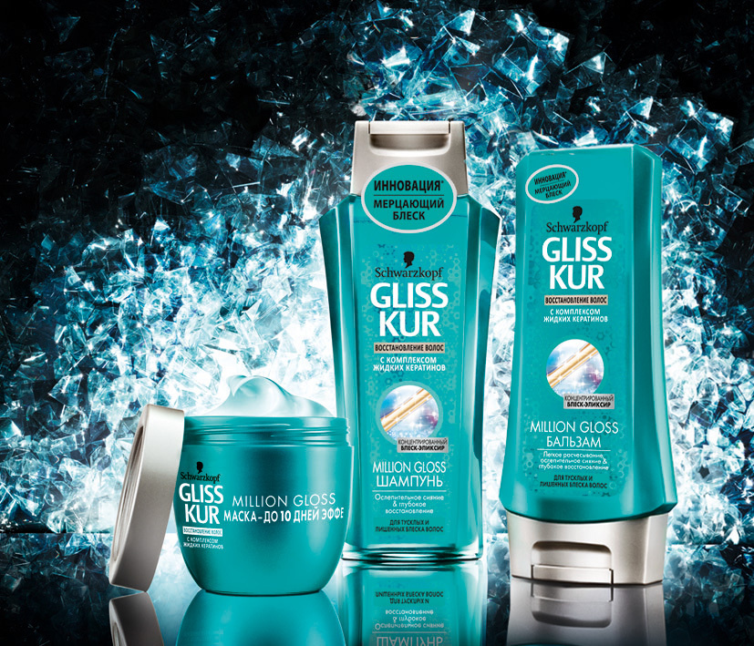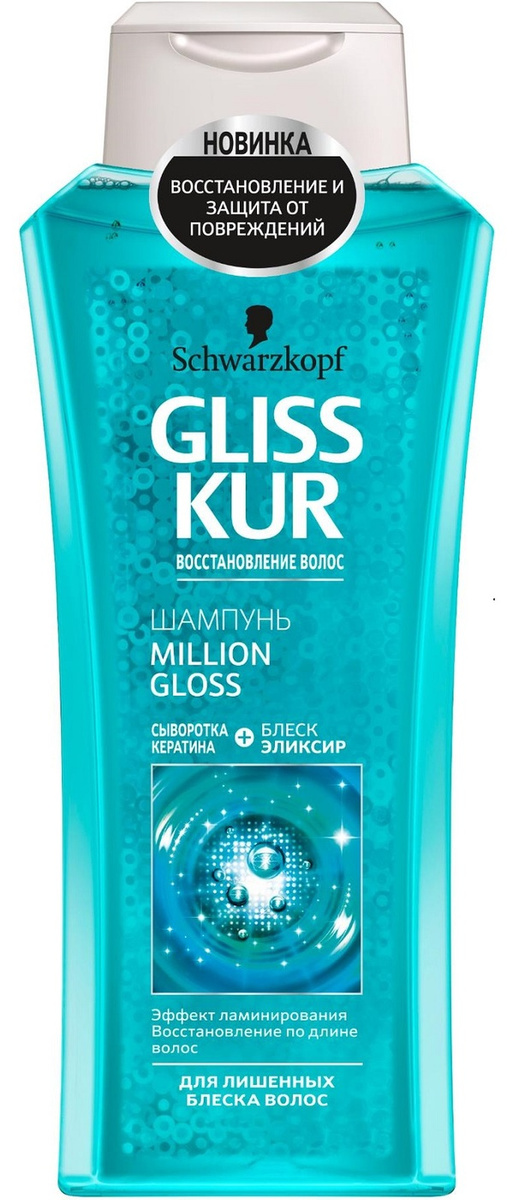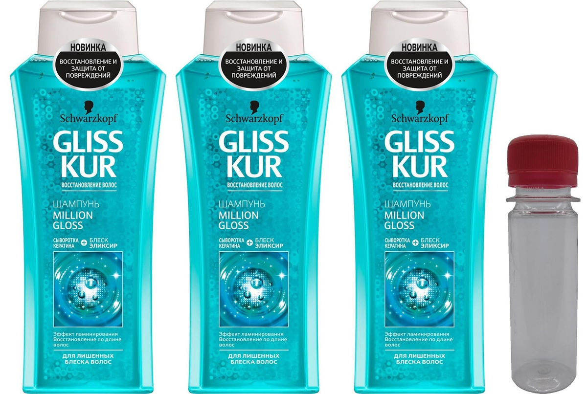 GLISS KUR набор из 3х бутылок шампуня по 250 мл Million Gloss с бутылкой 50мл в Подарок (для поездок и путешествий)