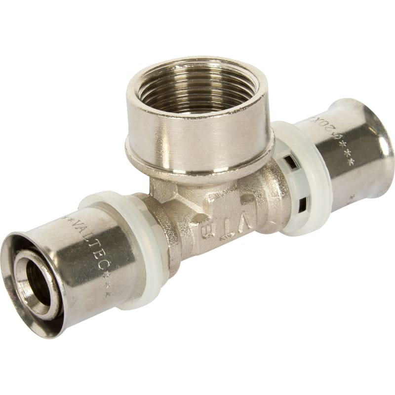 Пресс-тройник, внутренняя резьба, 20х3/4"х20 мм, никелированная латунь