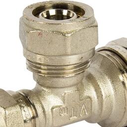 Тройник обжимной Valtec, 26x20x16 мм, никелированная латунь