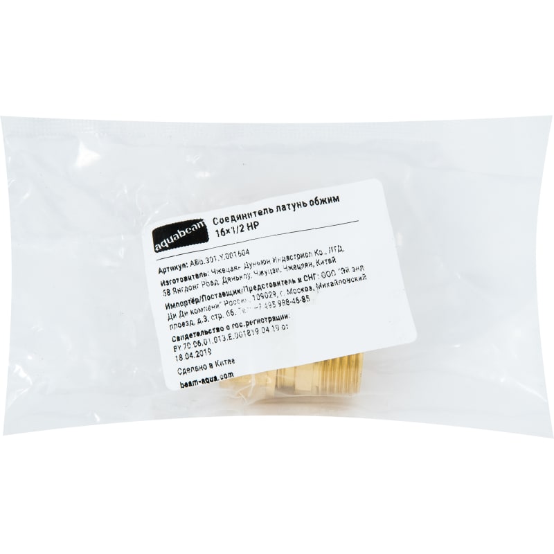 Соединитель обжимной, наружная резьба, 1/2"x16 мм, латунь