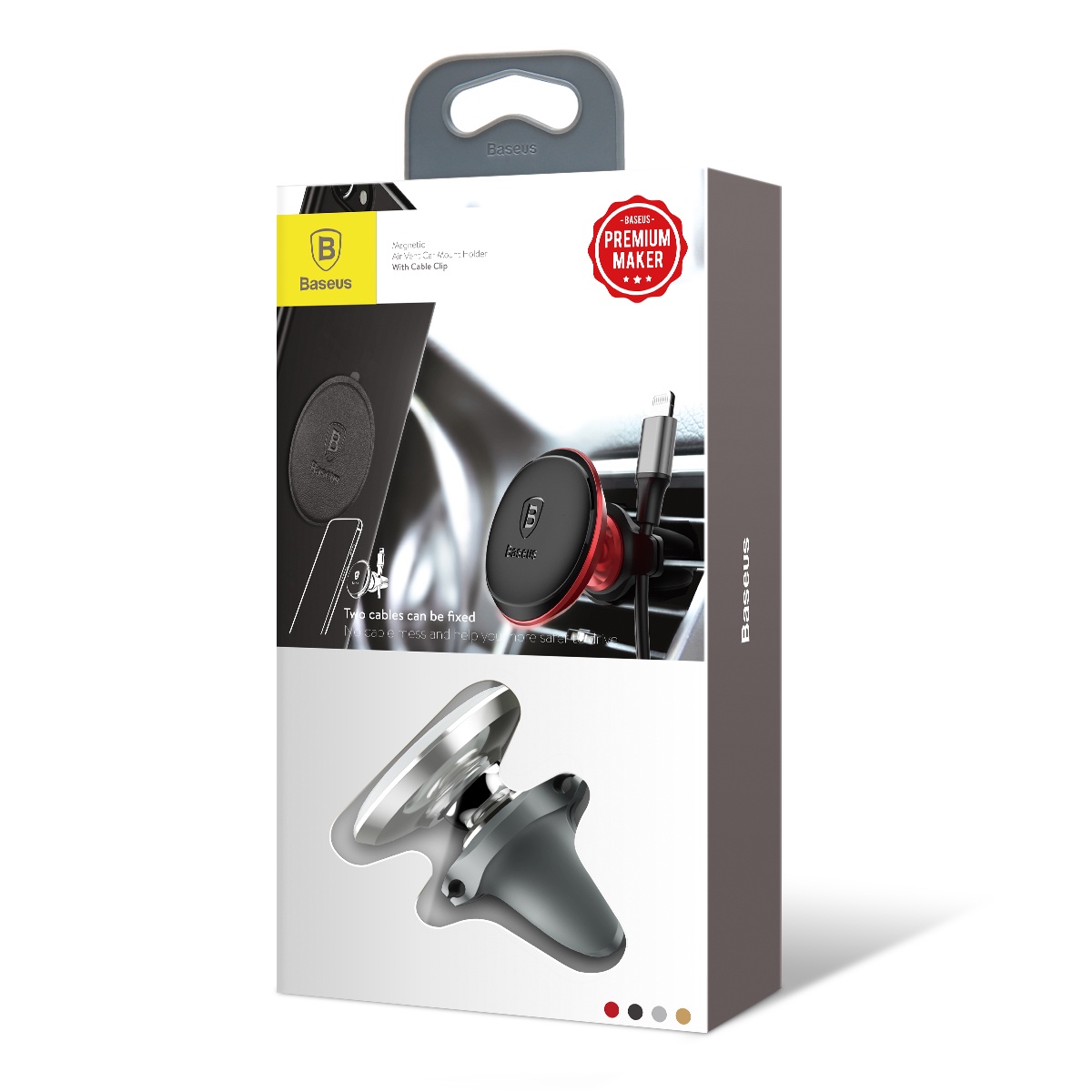 Магнитный автомобильный держатель Baseus Magnetic Air Vent Car Mount Holder with cable clip SUGX-A0S (серебристый)