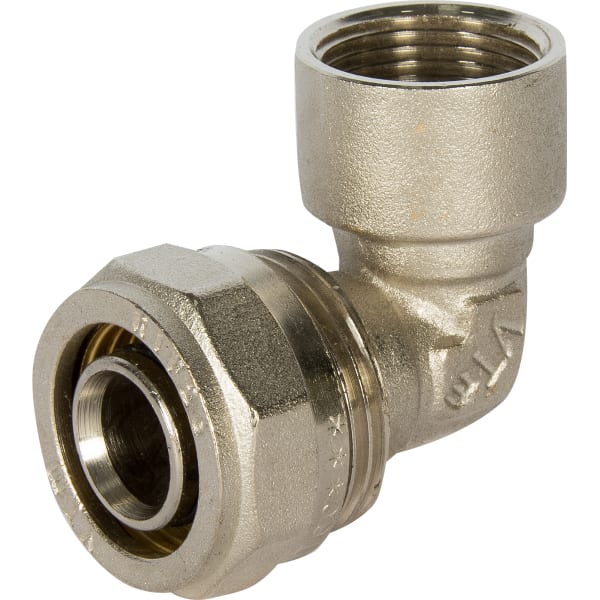Угол обжимной Valtec, внутренняя резьба, 26x3/4" мм, никелированная латунь