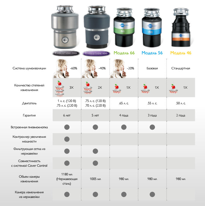 ОписаниеПневмовыключатель в комплекте. Измельчитель Evolution 100-2B предназначен для переработки любых пищевых отходов, включая даже некрупные кости, и избавления от необходимости постоянно выносить мусор в загородных домах и квартирах.