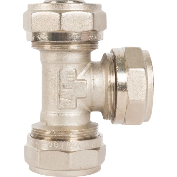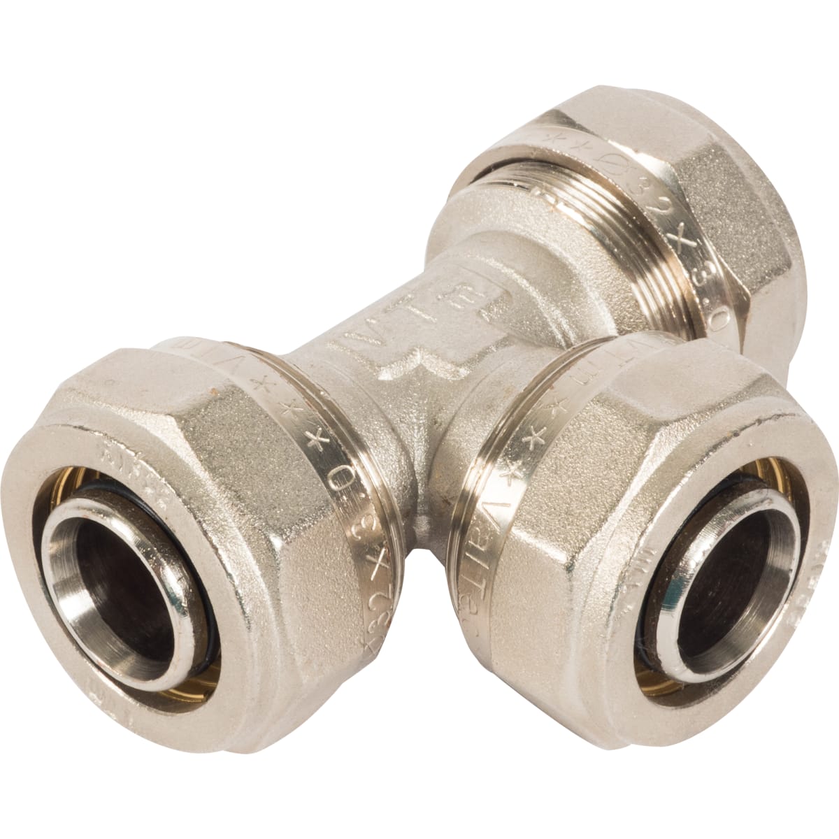 Тройник обжимной Valtec, 32 мм, никелированная латунь