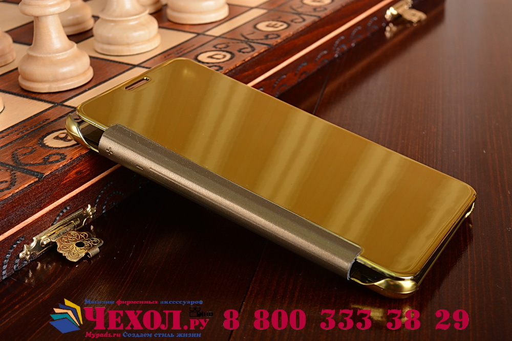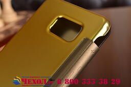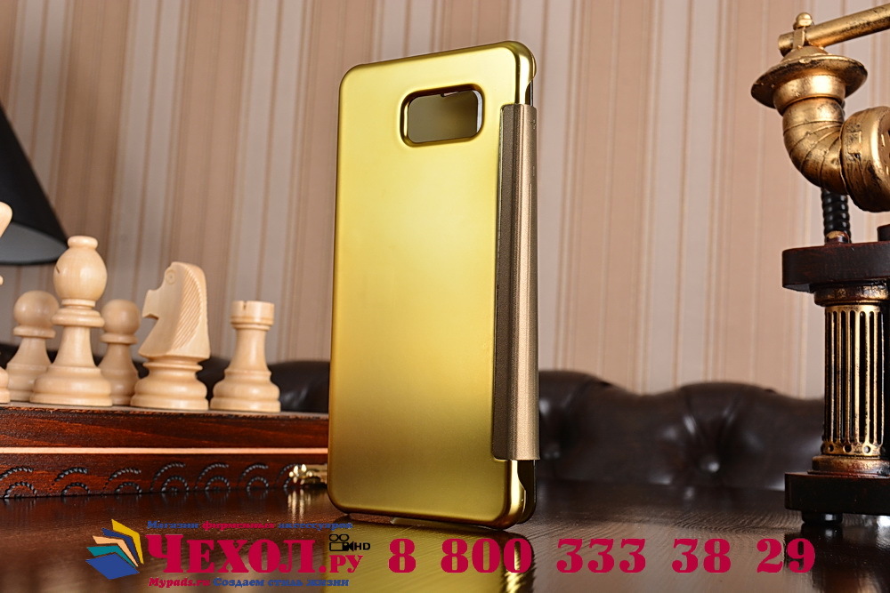 Чехол-книжка MyPads для Samsung Galaxy Note 5 с дизайном Clear View Cover с полупрозрачной пластиковой крышкой с зеркальной поверхностью золотой