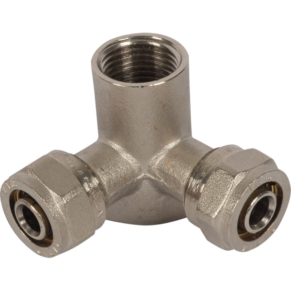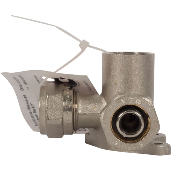 Водорозетка обжимная, с двойным выходом, 16 мм х 1/2", никелированная латунь