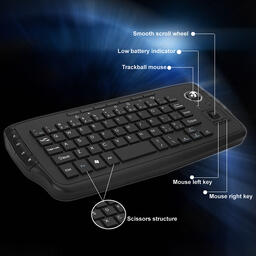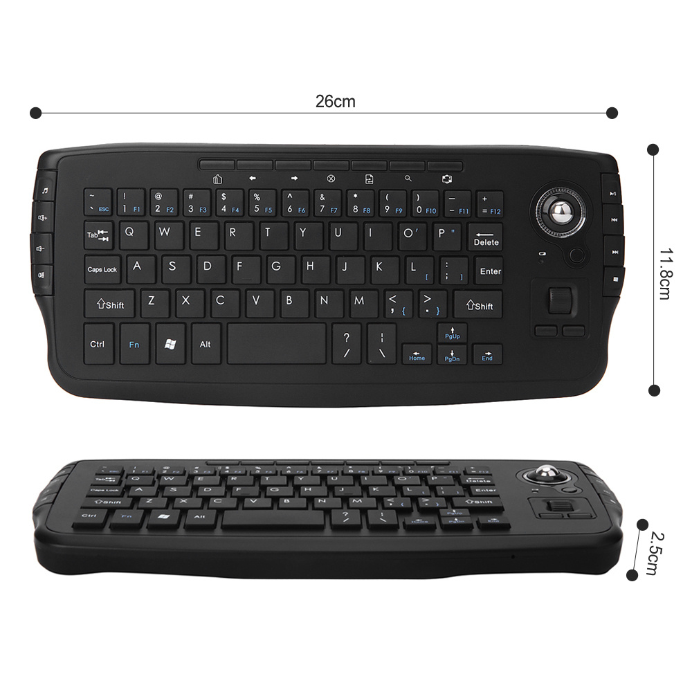 E30 2.4GHz Беспроводная клавиатура с трекболом Мышь Прокрутка колеса Пульт дистанционного управления для Android TV BOX Smart TV PC Notebook Black