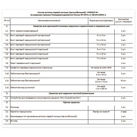 - Тип Автомобильная аптечка