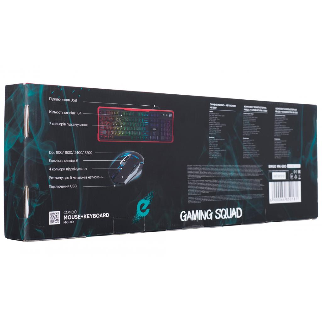 Периферія ERGO MK-580 має ергономічний дизайн, що дозволяє залишатися у грі довше і не втомлюватися, а підсвічування, яким оснащена клавіатура і миша дозволяє використовувати їх в темний час доби. Стильний і зручний набір ERGO MK-580 стане незамінним помічником у грі або роботі.