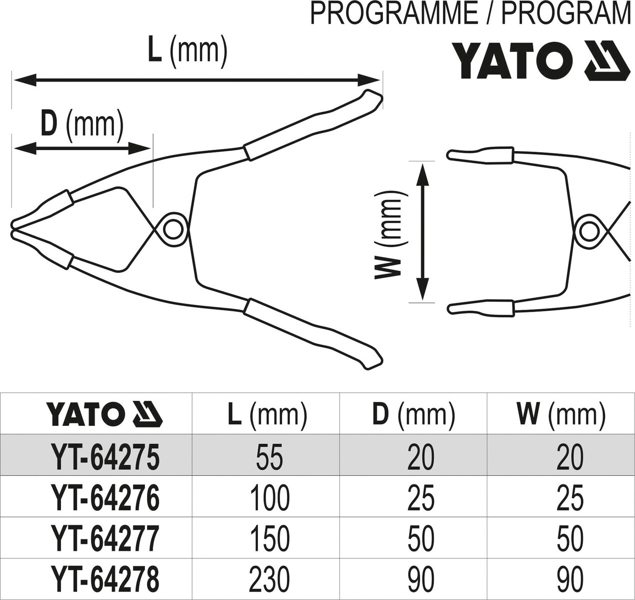 Yato YT-64277 - струбцина для прочной фиксации различных деталей и заготовок, которая используется как домашними мастерами, так и профессионалами. Основание, выполненное из долговечной стали дополняется пластиковыми накладками на ручках и губках пружинного устройства.