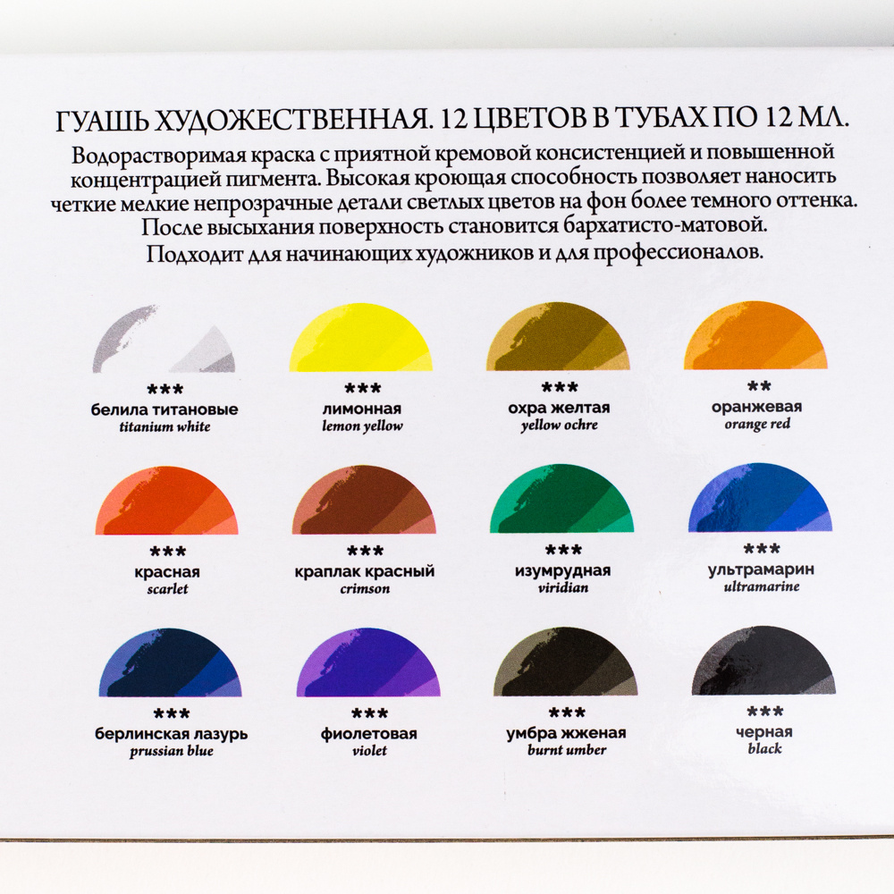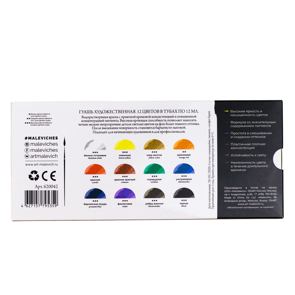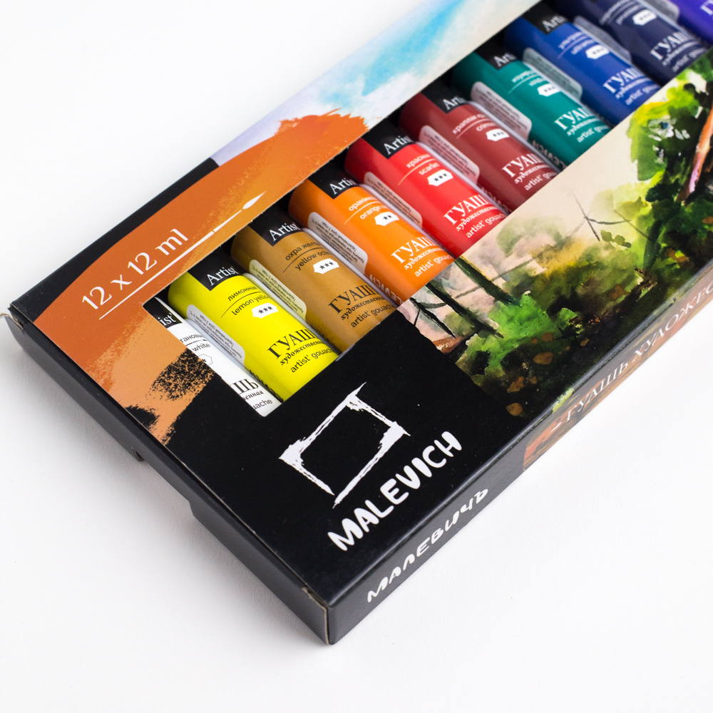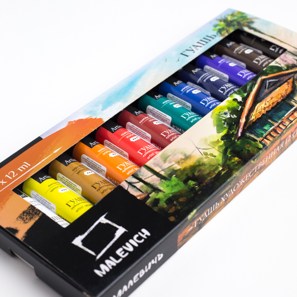 Набор гуаши Малевичъ, 12 цветов по 12 мл