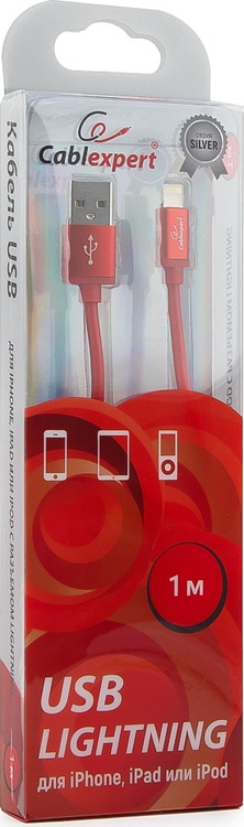 Кабель Cablexpert Silver, для Apple, AM/Lightning, 1 м, красный