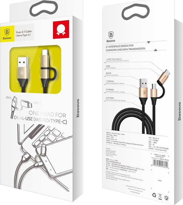 Кабель Multi USB-Micro+Type-C Baseus Yiven Gold 1m
