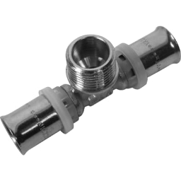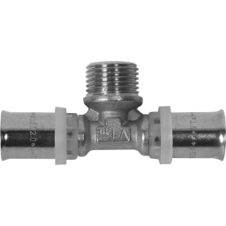 Тройник пресс Valtec, наружная резьба, 16х1/2"х16 мм, никелированная латунь