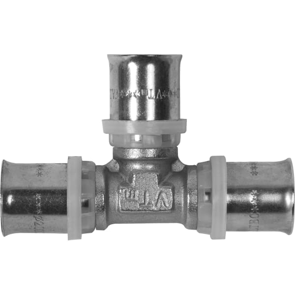 Тройник пресс Valtec, 20х20х20 мм, никелированная латунь