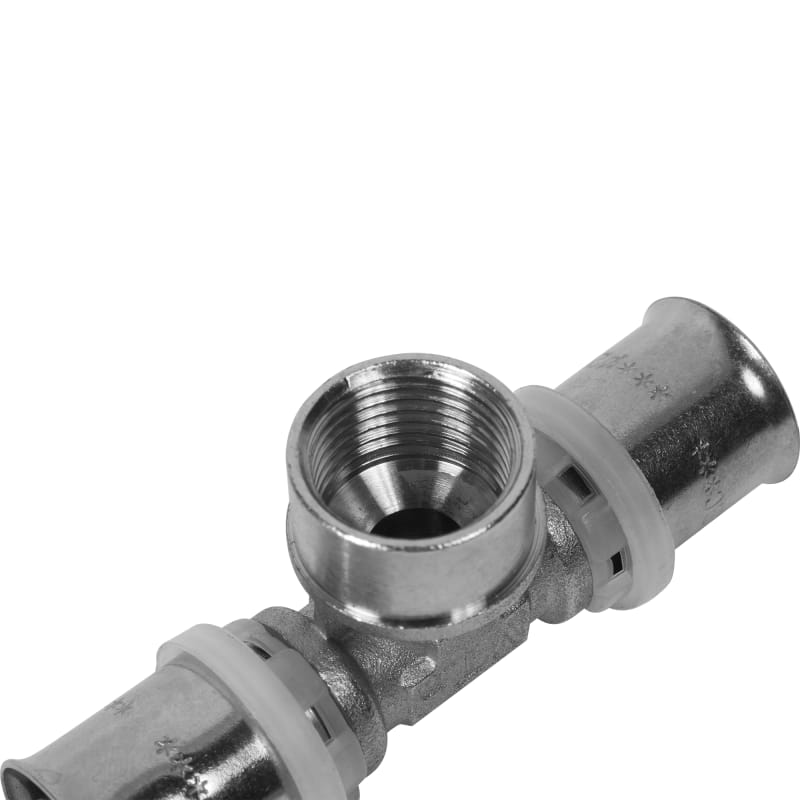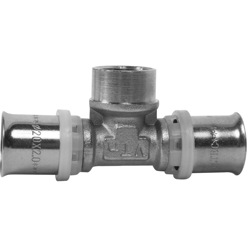 Тройник пресс с Valtec, внутренняя резьба, 20х1/2"х20 мм, никелированная латунь