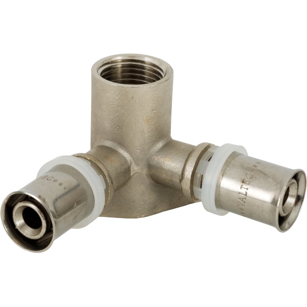 Пресс-тройник, внутренняя резьба, 16х1/2"х16 мм, никелированная латунь