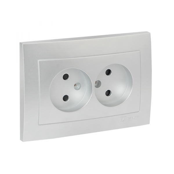 EKF Валенсия лицевая панель розетка 2-местной б/з 10А сталь с защ. штор. PROxima (ESR10-L-102-30)