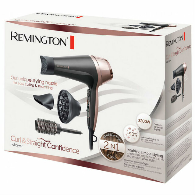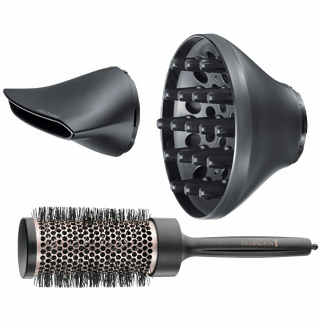 - Комплектация фен, 3 насадки, круглая термощетка, инструкция, гарантийный талон