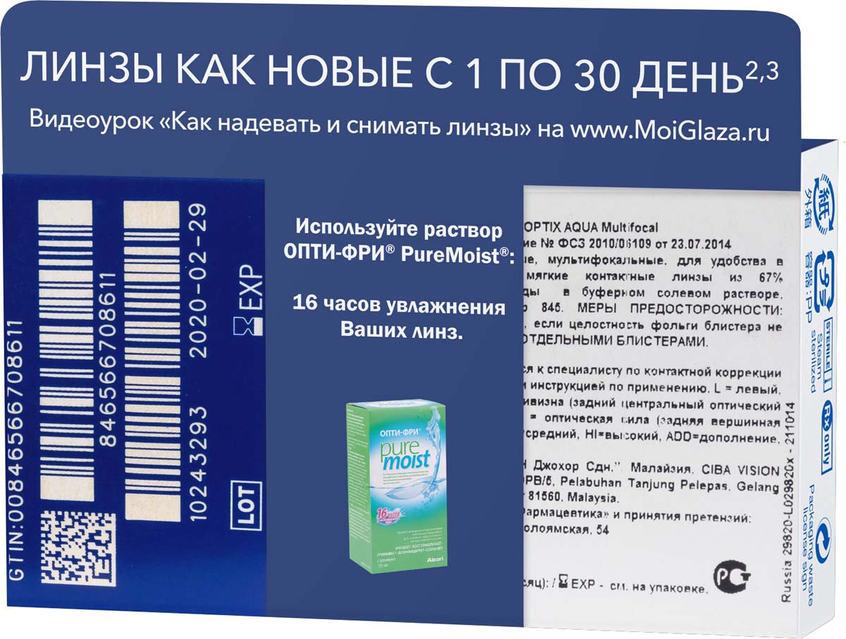 Контактные линзы Alcon Air Optix Aqua Multifocal Ежемесячные, 1.75 / 14,2 / 8.6, 3 шт.