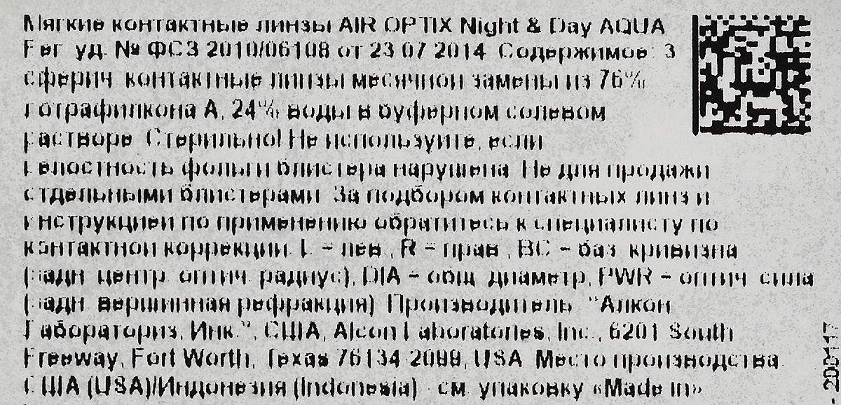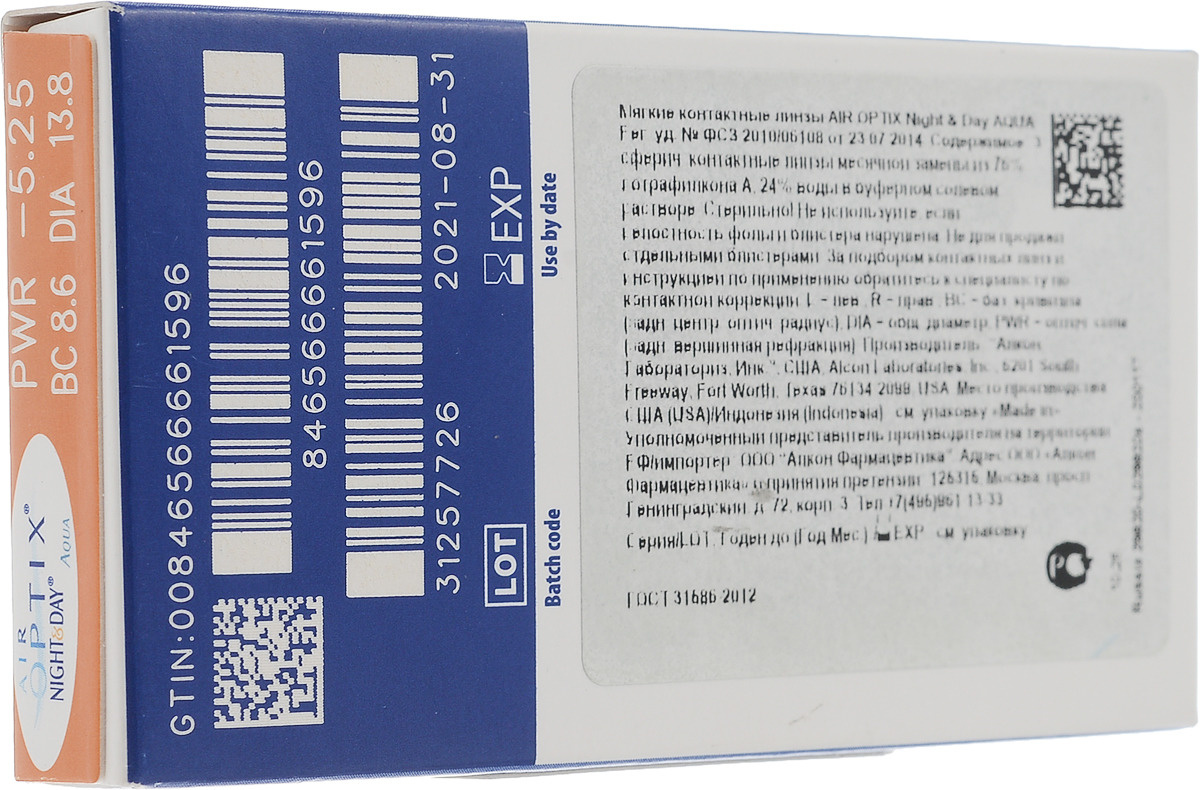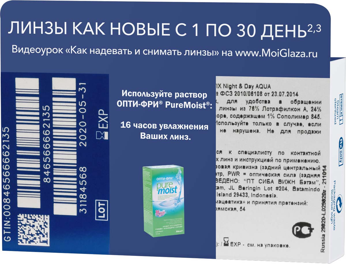 Контактные линзы Alcon Alcon-CIBA Vision контактные линзы Air Optix Night & Day Aqua 3шт / 8.6 Ежемесячные, -5.25 / 13,8 / 8.6, 3 шт.