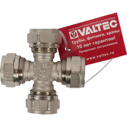 Крестовина обжимная Valtec, 20 мм, никелированная латунь