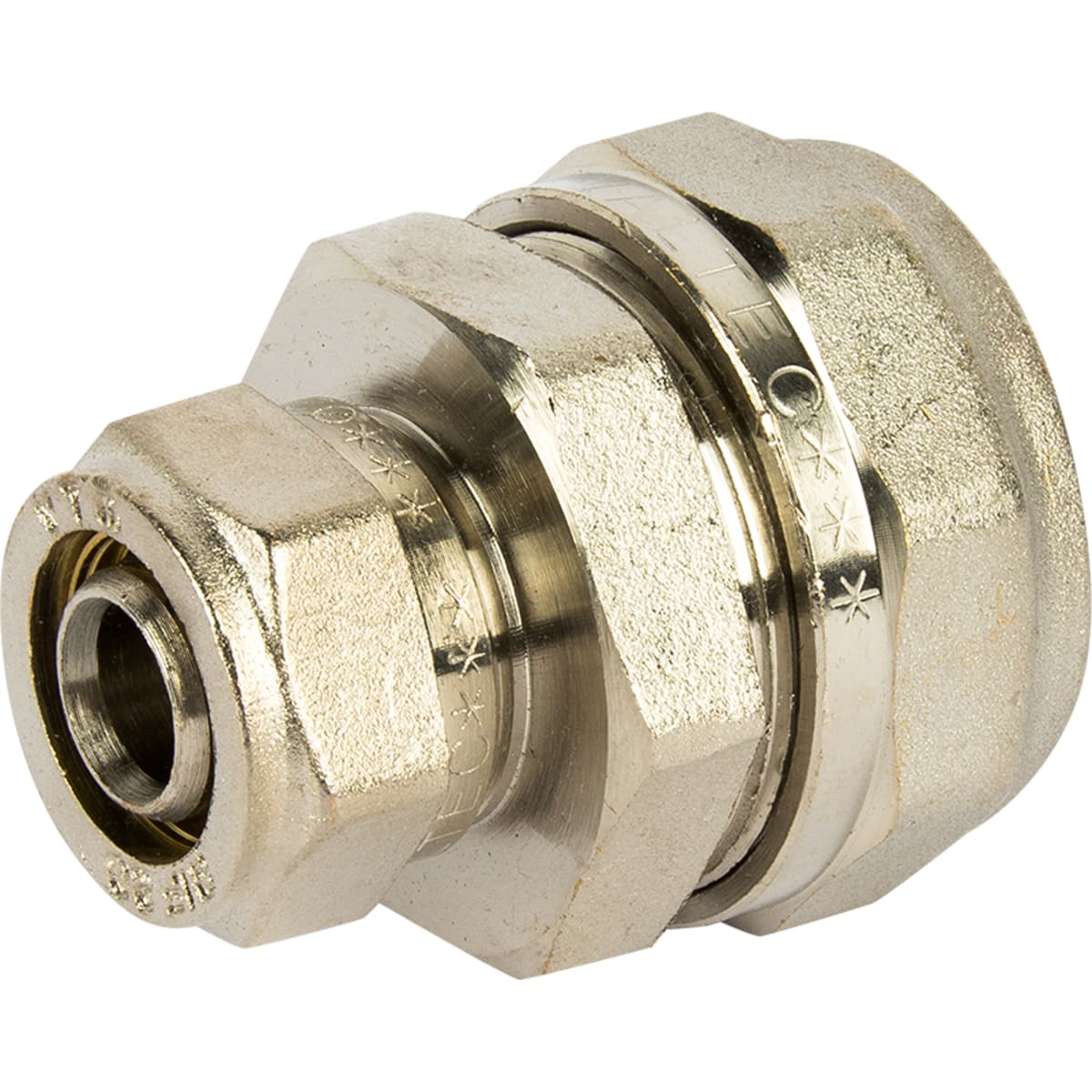 Соединитель обжимной Valtec, 32-20 мм, никелированная латунь