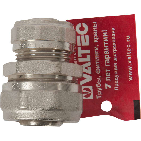 Соединитель обжимной Valtec, 32-26 мм, никелированная латунь