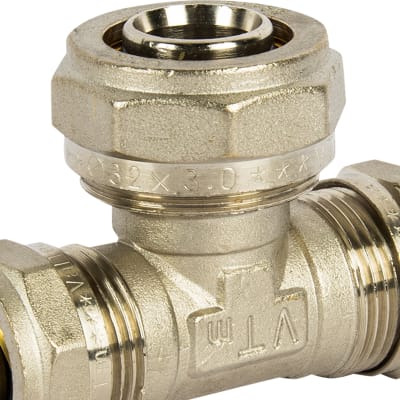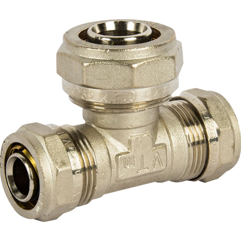 Тройник обжимной Valtec, 26x32x26 мм, никелированная латунь